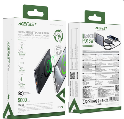 ايس فاست - باور بنك طاقة مغناطيسي سريع الشحن لاسلكيًا M8 PD18W بسعة 5000 مللي أمبير