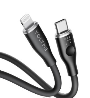 فولتمي - كابل باور لينك السيليكون تايب سي إلى لايتينيغ 3A / 1.2M موصل من سبائك الزنك / أسود