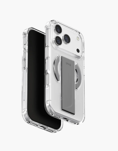 UNIQ - يونيك هايبرد هيلدرو ماكس - كفر حماية مع حامل للكاميرا يدعم الماج سيف لهاتف ايفون 16 برو ماكس - شفاف